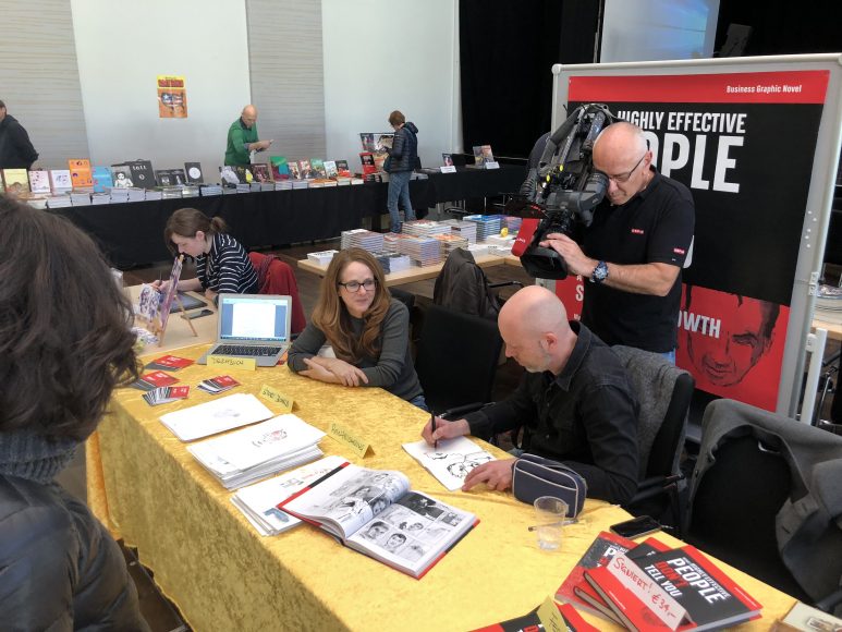 Zusätzlich hielten Gerald Hartwig und ich einen Vortrag über das ‚Making Off‘ des Buches: Was braucht es, um von einer Idee, zu einem Drehbuch, zu einem Storyboard, über Reinzeichnungen, über viele Überarbeitungen zum fertigen Buch zu kommen? Zu diesem Vortrag über das Making Off von „What Highly Effective People Don’t Tell You“ gibts auch einen extra Blogpost mit kurzen Videoausschnitten.